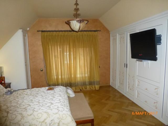 Продается кирпичный дом готовый к проживанию, укомплектованный мебелью и техникой. Все коммуникации - центральные (свет, газ, вода, канализация). 1-й этаж: прихожая - 28 кв.м, кухня-28 кв.м, зал с камином - 46,7 кв.м, жилая комната - 20,6 кв.м, санузел - 16,кв.м. 2-ой этаж: холл-50,6; комната релаксации - 21,5; кабинет - 20,5; спальня - 20,4; санузел - 10. Мансардный этаж: спальная комната - 18,3 кв.м. Цокольный этаж - 54 кв.м (коммуникации). Надворные постройки: гараж на одну машину с отоплением от общего котла дома; хозяйский домик 12 кв.м с отоплением; сауна с бильярдной с отоплением и канализацией; беседка с мангалом, колодец глубиной 12 м. Территория поселка ограждена, въезд через КПП. Рядом остановка автобуса до метро Саларьево, Румянцево, Юго-Западная, до станции Апрелевка 10 мин. пешком. Рядом магазины, рынок, банк, кафе. Участок правильной формы 30х40 метров.